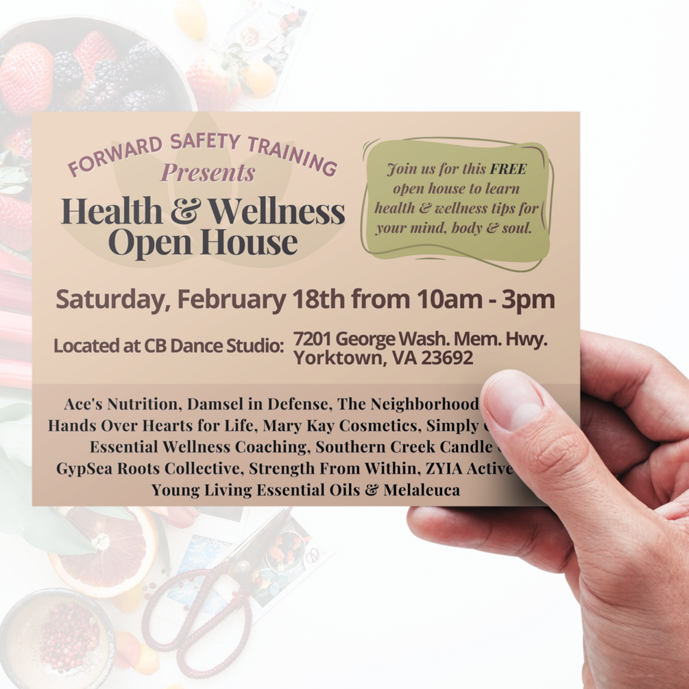 Post card size digital download for the Forward Safety Training Wellness Open House on Feb. 18, 2023.